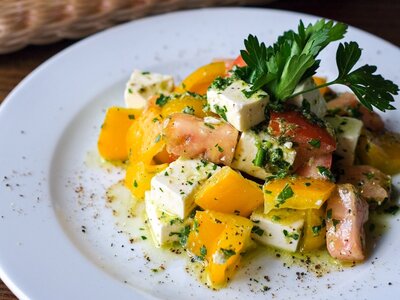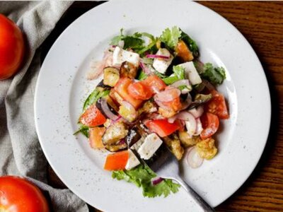 Салат с баклажанами, томатами и фетой