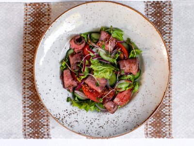 Салат с говядиной гриль