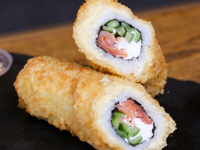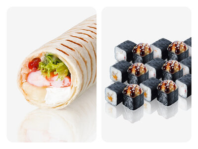 Шаурма-ролл с лососем и креветкой
