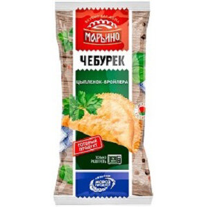 - Чебурек Марьино с мясом цыпл-бройлера жареный (изделие кулин рубл в тесте) заморож 130 г флоу-пак130 г
