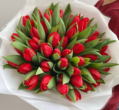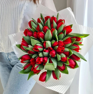 - Букет из 51 красного тюльпана премиум · цветочки