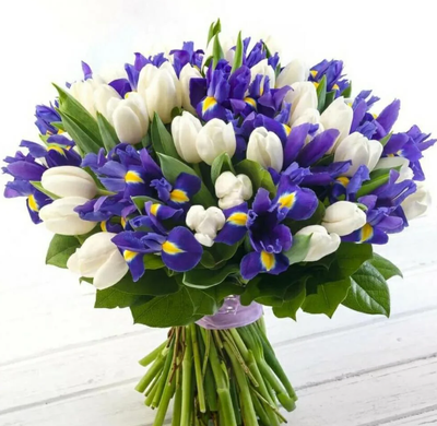 - Букет премиум из белых тюльпанов и ирисов — Цветочки