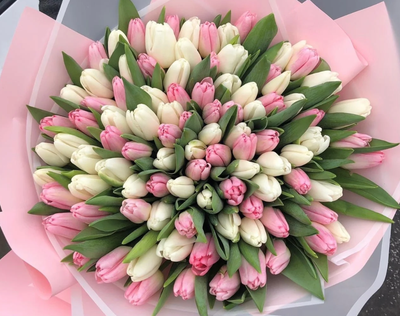 - Букет из 51 нежного тюльпана