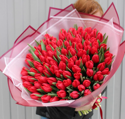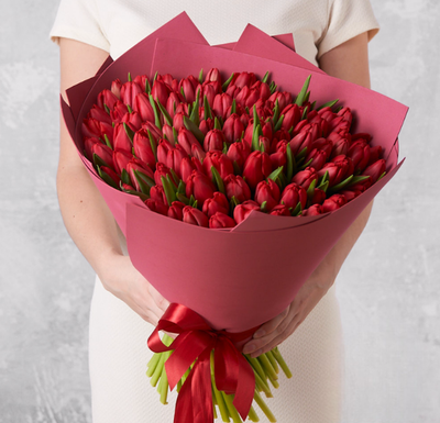 - 101 красный тюльпан премиум букет.