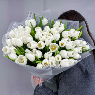 - Букет из 101 белого тюльпана премиум