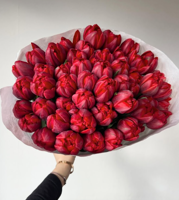 - Букет из 51 красного пионовидного тюльпана