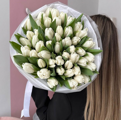 - 51 белый тюльпан премиум букет.