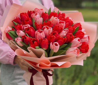 - Букет красных пионовидных тюльпанов премиум