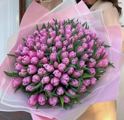 - Букет из 101 розового пионовидного тюльпана премиум