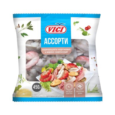 - –29%Ассорти из морепродуктов морож. и варено-морож. с креветками пастер.450г450 г