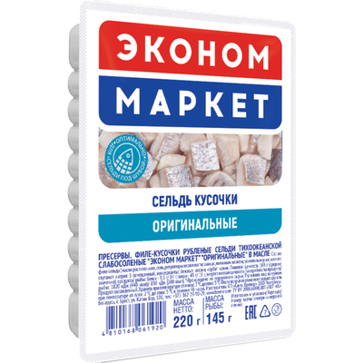 - Филе-кусочки сельди т/о Оригинальные в масле рубл сл/сол 220г п/уп Эконом Маркет220 г