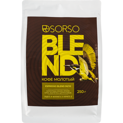 - Кофе зерн. нат. жар. 90/10 Espresso Blend SORSO (90% Арабика/10% Робуста) 250 Г250 г