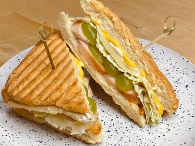 - Изделие кулинарное х/б Панини с ветчиной и сыром 300г ФК300 г
