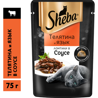 Корм для кошек «Sheba» ломтики в соусе, телятина и язык, 75 г