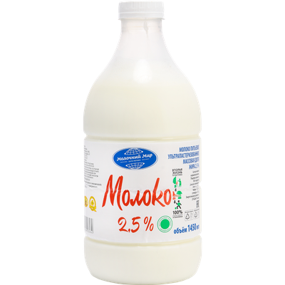 Молоко «Молочный мир» 2.5%, ультрапастеризованное, 1450 мл.