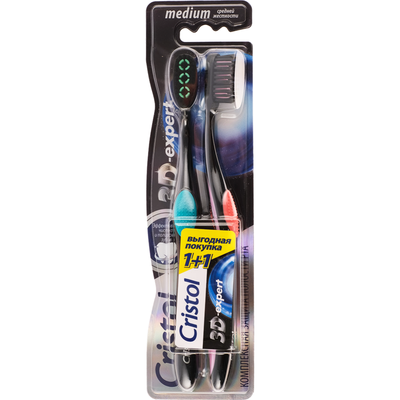 Набор зубных щеток «Cristol» 3D-expert, средней жесткости, голубой/оранжевый, 2 шт