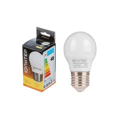 Лампа светодиодная G45 ШАР 6 Вт 170-240В E27 3000К ЮПИТЕР ЛЮКС Юпитер
