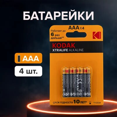Батарейки ААА "XTRALIFE Alkaline", Kodak, 4 шт.