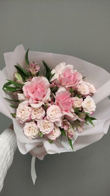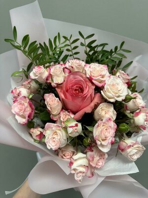 Букет из кустовых роз с пионовидной розой