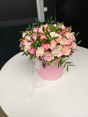 Композиция из кустовых роз в коробке