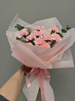 Букет из розовых диантусов и эвкалипта