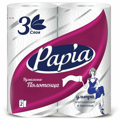 Полотенца бумажные для кухни Тм papia 3 слоя 2 рулона 1/2 листа