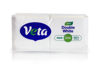 Салфетки бумажные неокрашенные Veta double white eco, по 200шт. в упаковке