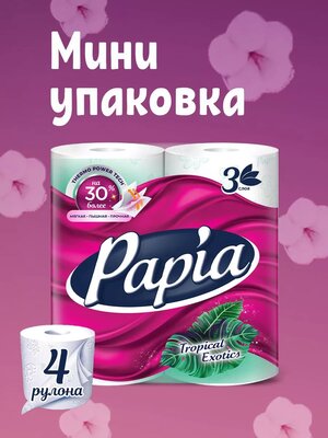 Papia бумага туалетная трехслойная, Тропикал экзотикc. Белая, ароматизированная, с цветным тиснением и перфорацией, 4 шт