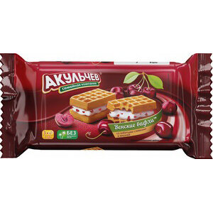 Изделия хлебобулочные сдобные Акульчев Венские вафли с нач со взбит сливками и вишней 112 г флоу-пак