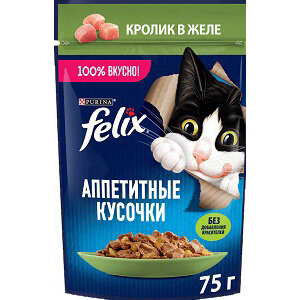 Консервы д/кошек Feliх кролик в желе кусочки 75 г пауч