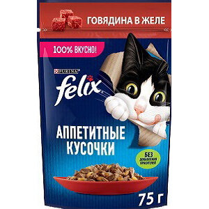 Консервы д/кошек Feliх говядина в желе кусочки 75 г пауч