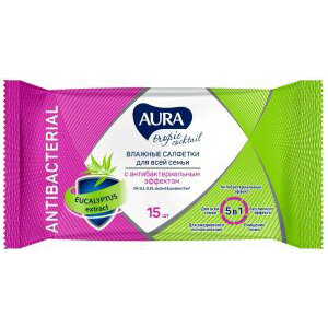 Салфетки влажные Aura tropic cocktail c антибактериальным эффектом 15шт/1уп