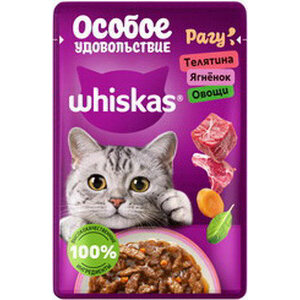Корм д/кошек Whiskas Рагу Особое удовольствие Телятина, ягнёнок и овощи 75 г пауч