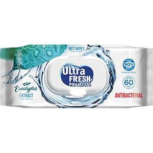 Салфетки влажные Ultra Fresh Premium Antibacterial с экстр эвкалипта с клапаном 60шт/1уп