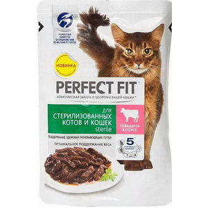 Корм д/стерил котов и кошек Perfect fit с говядиной в соусе консерв полнорац 75 г пауч
