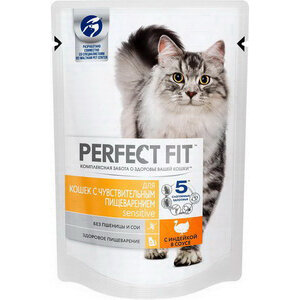 Корм д/кошек Perfect fit полнорационный с чувствит пищеварением с индейкой в соусе консерв 75 г пауч