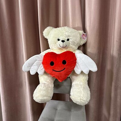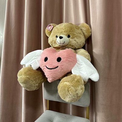 Мишка и сердце с крыльями кофейного цвета цвета