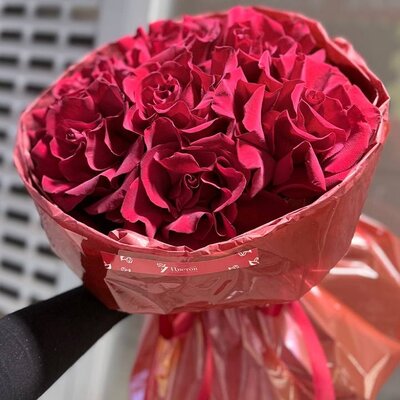 Букет 15 малиновых кенийских роз