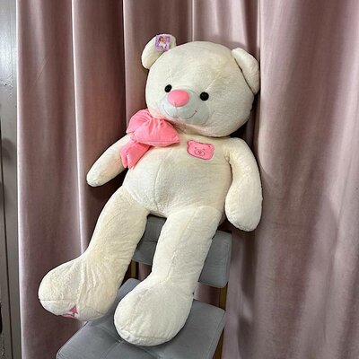 Белый мишка с розовым бантиком
