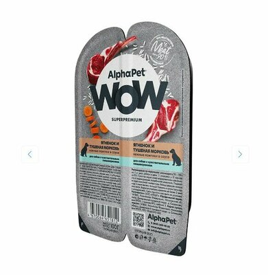 AlphaPet WOW Superpremium Ягненок и тушеная морковь нежные ломтики в соусе для собак, 100 г