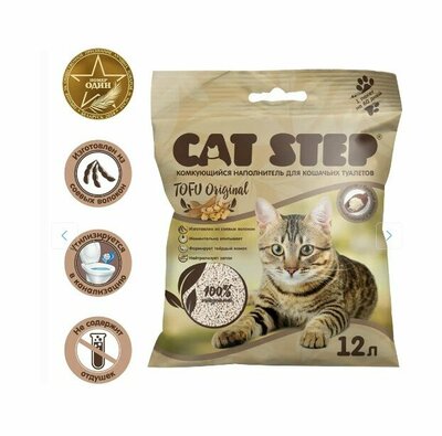 Cat Step Наполнитель комкующийся растительный Tofu Original (без запаха), 12 л