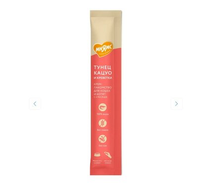 Мнямс Крем-лакомство для кошек с тунцом Кацуо и креветками, 15 г