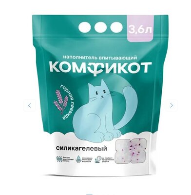 Комфикот Наполнитель силикагелевый впитывающий "Горная лаванда", 3,6л