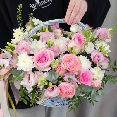 Корзина цветов "Маршмэллоу"