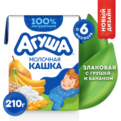 - Каша молочная злак Засыпай-ка с грушей и бананом 2,7% 200мл ДП Агуша200 г