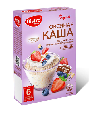 - Каша овсяная Bistro Gurmina со сливками клубникой и черникой, 240г240 г