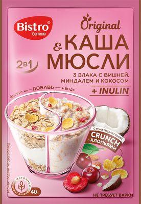 - Каша и мюсли. 3 злака с вишней, миндалём и кокосом Bistro Gurmina, 40гр40 г