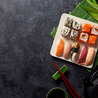 Морепродукты в кисло-сладком соусе с лапшой соба